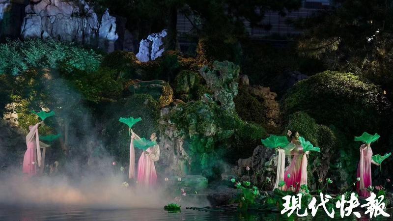 瞻园内,戏韵的婉转唱腔与光影交织;大报恩寺遗址的琉璃塔下,古乐与星辉斑斓共舞;明城墙上,千年砖石在光雕中重现盛世画卷……